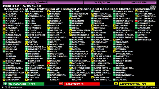 arrow-up1551arrow-down1external-linkUN votes to recognise enslavement of Africans as 'gravest crime against humanity'plus-squarewww.bbc.comgeneva_convenience@lemmy.ml to World News@lemmy.worldEnglish · 1 day agomessage-square251fedilink