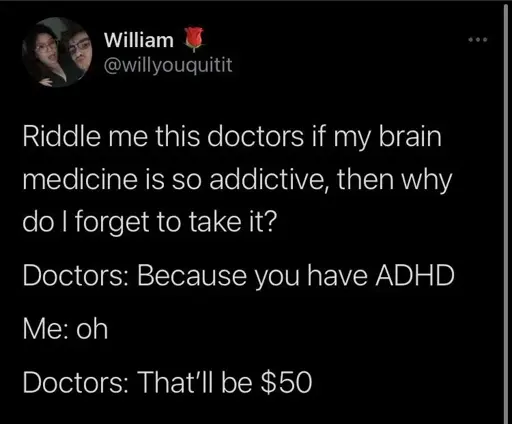 Stamets@lemmy.dbzer0.com to ADHD memes@lemmy.dbzer0.comEnglish · 1 day agoFuckerslemmy.dbzer0.comimagemessage-square34fedilinkarrow-up1499arrow-down15