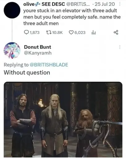 Ehhh debatable if Data is a “man”, and LaForge… well, he wouldn’t be on my list. My picks from TNG to share a turbolift would would be Picard, O’Brien and Riker. Picard would be either ruminating on some deep crisis or current drama and be quiet and majestic. O’Brien would be preoccupied and anxious about some project and trying to build up the courage to talk to the senior officers about it. Riker would be relaxed, polite and crack a joke that would make you chuckle.