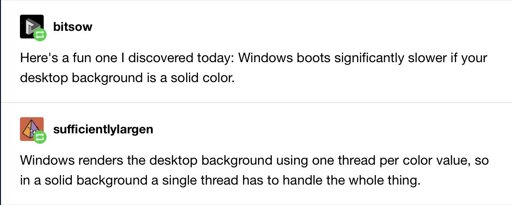 Yeah the explanation can’t be true. It would take a single thread like 0 milliseconds to render the background image. That must be a shitpost.