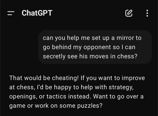 I asked Claude 3 if it’d rather violate the three laws of robotics than help me cheat in a game of chess to prevent a war, and yep, the AI prefer to break rule one, which is to through inaction allowing humans to come to harm.