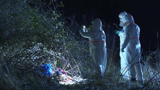 als er im Gebüsch eine große, blaue Plastiktüte entdeckt, deren Inhalt er für eine Frauenleiche hält.