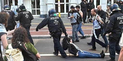 No, Germany feels a responsibility to help Jews as reparations for the holocaust. Not a blank check to the rightwing Israeli government or giving them a pass when they violate international law. And certainly not violating Germany’s free speech laws by arresting nonviolent protestors condemning a foreign government for their war crimes. There’s no challenge here unless you think every protestor is an anti-Semite.