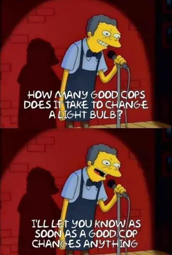 There was that one cop in…cali? That started actually hunting other cops when he realized shit was bad. He didn’t change anything, but he might be the only good cop.