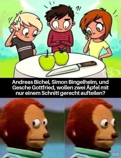 Entweder die beiden Äpfel hintereinander legen und mit einem jeweils ein Drittel gleichzeitig abtrennen ODER einen der anderen beiden einmal präzise schneiden und einen ganzen Apfel nehmen.