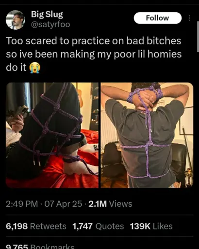 Wait, that’s BDSM, not bondage specifically. I’m ace so it’s really not important, but I am curious about whether people prefer being tied up or seeing someone else tied up.