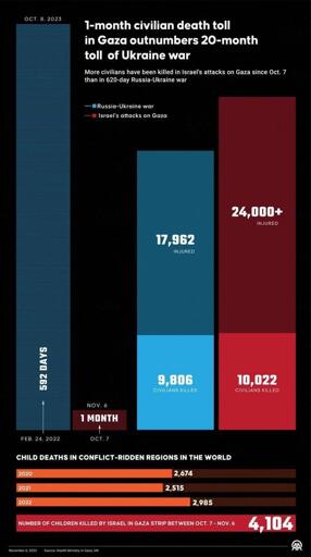 More civilians have been killed in Israel’s attacks on Gaza since Oct. 7 than in 620-day Russia-Ukraine war