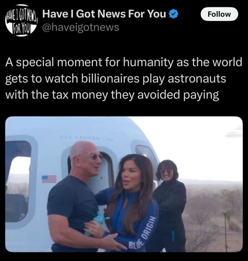 I don’t mind sending billionaires to space. My issue is bringing them back to Earth.