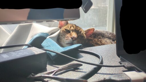 Ren is sun bathing while I work. Making sure to keep an eye on me.