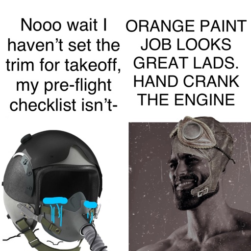WWI Pilot: Alright fellas, just grab me my parachute and I’ll be off.
