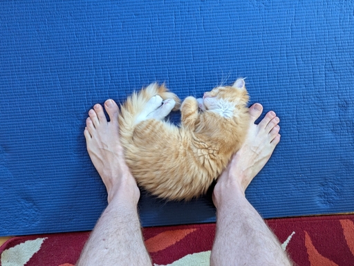 Cats love yoga mats. They assume you’ve put it on the floor so you can both stretch and lie down together.