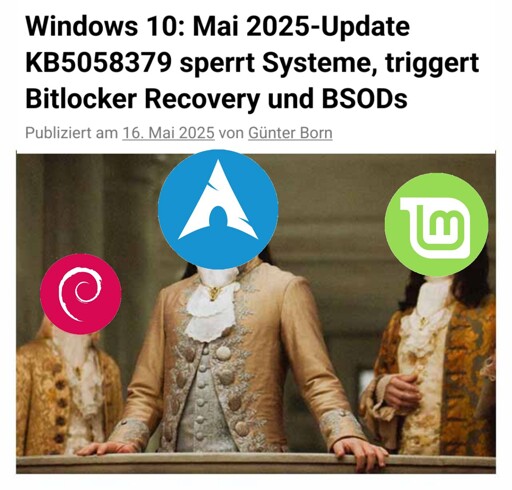 Jo, gibt’s schon seit ein paar Jahren. Deswegen hatte der Kommentar, auf den du geantwortet hast, gegen die drei Distribution geschossen, die im Meme dargestellt sind. Also Mint hat mit Timeshift zwar auch eine ähnliche Lösung, aber bei Arch ist das schon nochmal extra viel Handarbeit und bei Debian gibt’s meines Wissens noch überhaupt keine Bemühungen in die Richtung…