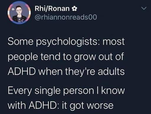 But it is also be true that the insight “most people loose ADHD by adulthood” is in itself kind of flawed as people can develop coping methods which can mask the ADHD. If there’s a significant people complaining/reporting then, it would be something to look into.