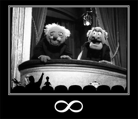 Statler and Waldorf are the two old man shit-talking Muppets. Servo, Mike, and Crow are the shit-talkers from MST3K. It would create a positive feedback loop of ever increasing taunts.