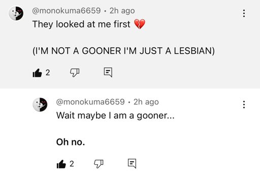 minus-squareBroadfern@lemmy.worldlinkfedilinkEnglisharrow-up8·6 months agoLmao @ 3 Yeah basically chronically online masturbator/porn-obsessed.