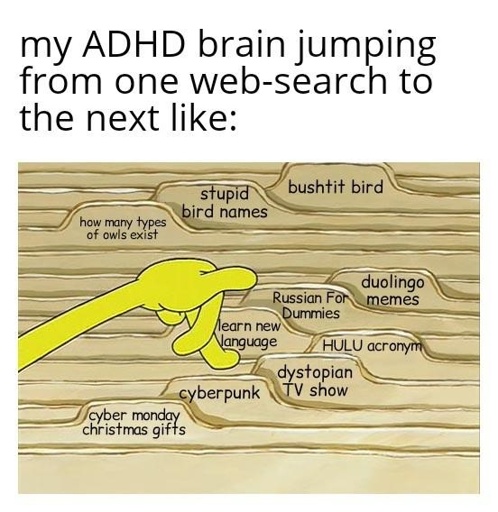 I just went through some tabs on my work computer and there were several tabs about Werner Herzog, then a few true crime tabs, a bunch of houses on sale tabs, pinterest tabs about how to sow a frog and then a bunch of work related tabs with documents, emails, dropboxes and so on.