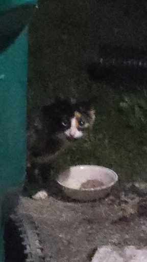 We saw this absolutely SCRUNGLY little thing with a paw on our back door, but she bolted when she saw us. I lured her out of hiding with some wet food and a bowl, giving her small amounts at a time and gradually moving it closer to our back porch. She was entirely too young and hungry to be outside (she ate 2 whole cans of wet food at once. Even our fattest of cats are satisfied with one), so we made a plan to trap her. The trap turned out to not be necessary as she got bold after a week and let me sit with her and even pet her a bit! She did get startled and slash me up a little bit (rabies shots are ASS) but she is a sweetheart. Since she kept coming to the door we decided to quarantine our other cats and open it and lure her in with food. It eventually worked and we have her quarantined in the bathroom for now. Sadly we already have 5 cats and their politics are already complicated enough, but we found her a forever home with someone who will spoil her rotten.
