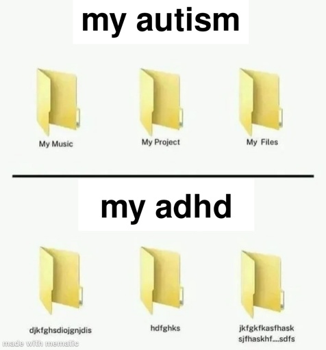 Autism: “I need structure and planning in order to function” ADHD: “Yeah okay let’s bring some structure and… wait did we respond to that message from yesterday? Oh look we still need to wash the dishes, let’s grab… oh what’s this plate doing here, let’s put it back. Wait what were we doing again?”