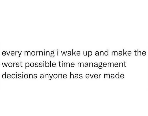 Nope, can’t relate, my time management skills are too bad to wake up in the morning 😅
