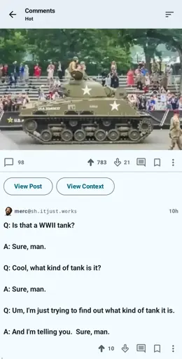Also I am not so sure about them calling it a Sherman because of the shear manliness of it, because this guy is surely the most “sure man” of them all and he gets no tanks at all.
