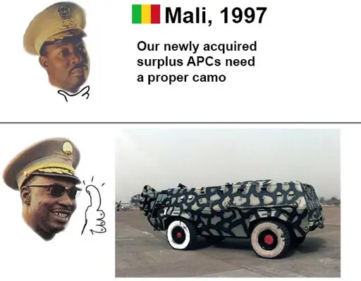 Not so the wheels which look like they are painted like that for a parade, but the body paint does a fantastic job at breaking the lines of the vehicle. People seeing something like that partially obstructed by a bush might not be able to tell it is vehicle shaped at all, let alone be able to tell what type of vehicle it is.