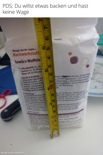 Und jetzt gehst du dir mal brav eine Wage und Messbecher besorgen, dann üben wir das nochmal. Ich bin in ~ 3h zur Kontrolle da.