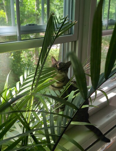 She likes to hang out in the palm tree.