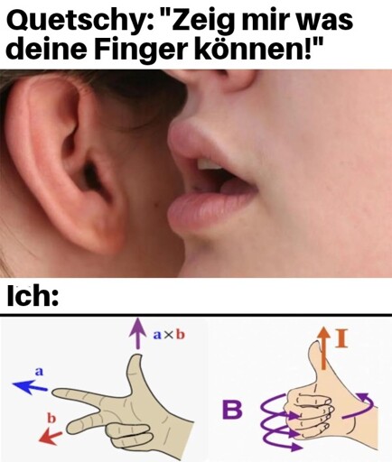 Schön die Rechte-Hand-Regel erklärt, aber vergessen zu erwähnen, dass man sich mit der Korkenzieherregel die Richtung des Magnetfeldes einer Magnetspule merken kann (du hast nur eine Handgeste erklärt).