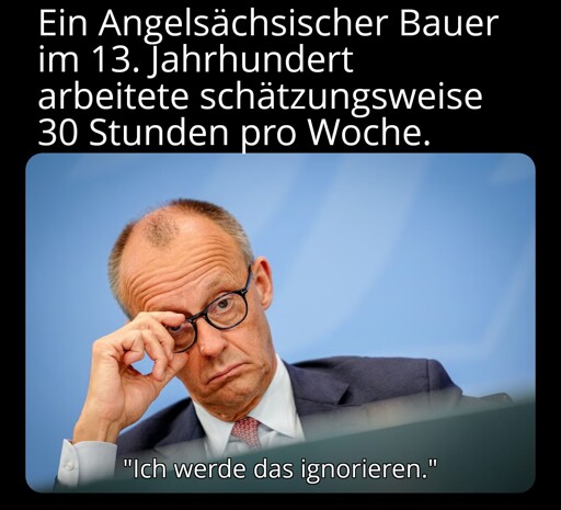 Dies. Der wird eher 30 Wochenstunden für seinen Lehnsherrn gearbeitet haben, und dann war er bei null und durfte sich in der Freizeit selbst versorgen.