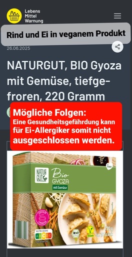Rindfleisch ist kein kennzeichnungspflichtiges Allergen. In der Meldung steht drin, dass Rind abgefüllt wurde. Wo genau liegt jetzt das Problem?