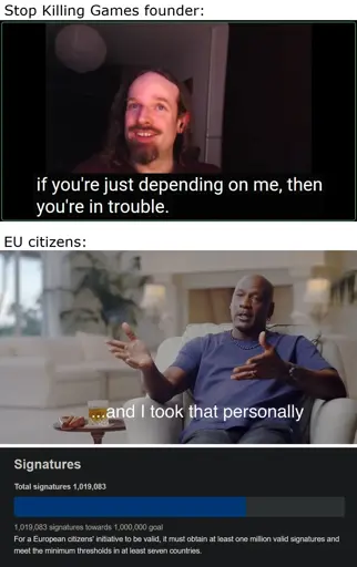 Signatures threshold has been met! -Edit: Per comments below, we still need more (valid unique EU citizen) signatures, as the aim is for 150% to make up for possible bot signatures.
