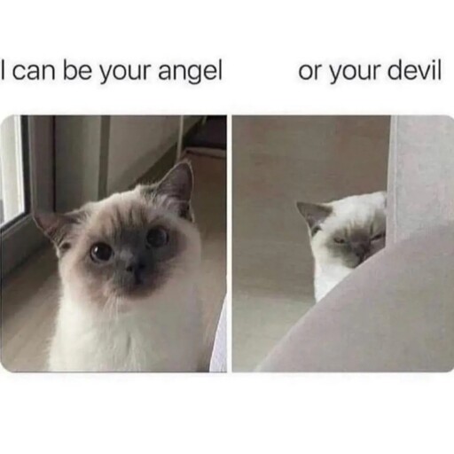 arrow-up1432arrow-down1imageAngel or devilpiefed.cdn.blahaj.zoneLadyButterfly she/her@piefed.blahaj.zone to cats@lemmy.worldEnglish · 5 months agomessage-square4fedilink