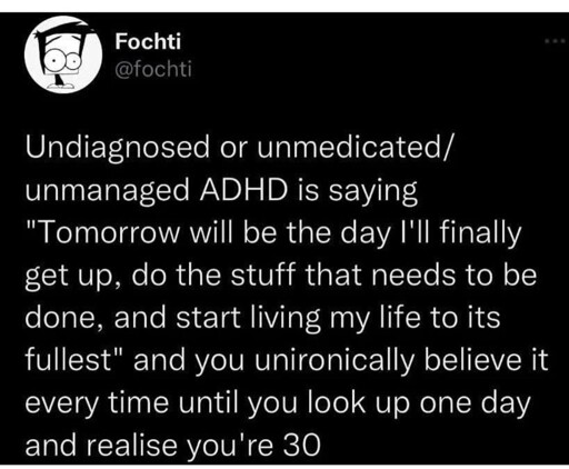 I stopped caring about “getting my life together”. All it means to me is being a nice little cog in the soul crushing machine. I take care of the absolute minimum on a day by day basis and use what’s leftover to have fun and do what I want to. I figure by the time it catches up to me, the world will have really gone to shit. If somehow the state of things actually improve, either it’ll be a world that treats people with adhd better or I’ll go out on my own terms.