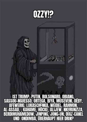 Und da war noch ein dritter von der Sorte, irgendwie die vergangene Woche - fällt mir nicht mehr ein. Wer ist noch gestorben und war in allen Michmichs - außer Ozzy und Hulk?