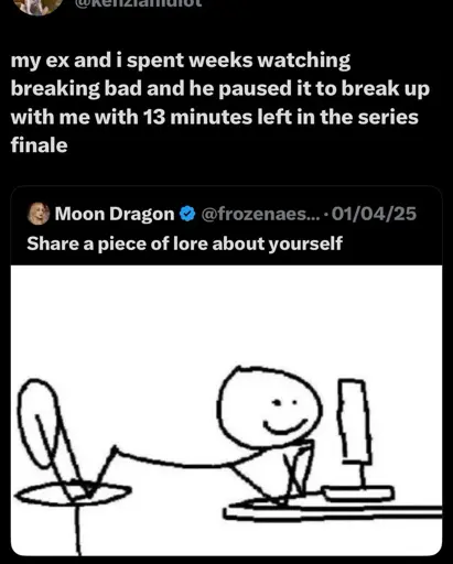 minus-squareinsight06@lemmy.worldlinkfedilinkarrow-up21·4 months agoPlot twist: OP would not stop talking throughout the show and them ruining the finale was the last straw.