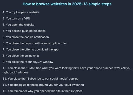 there was this satirical “web browsing simulator 2025” or something like that where you had to do all those things.