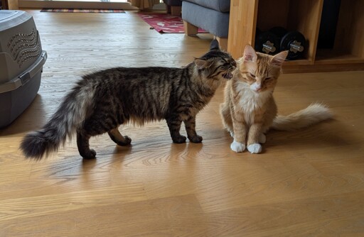 I gave him lots of hugs and pets. She still hisses at him. It might take a day or two…