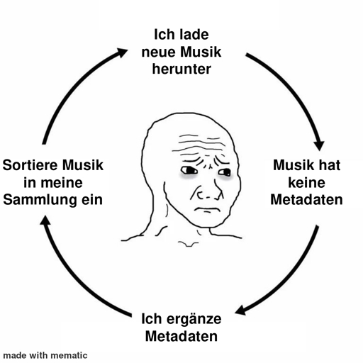 Und ich bin genervt, wenn ich ein paar Dutzend Lieder, die ich im Monat von YouTube runterlade, von mp4 in mp3 umwandeln muss … mit selber metadaten eintragen halte ich mich da größtenteils gar nicht auf, auch wenn es durchaus praktisch wäre, wenn ich die Sachen durch automatisierte Suchen finden würde …