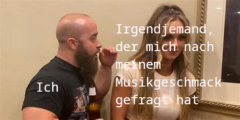 Ich warte immer noch darauf, dass ich irgendwem, der/die mich nach meinem Musikgeschmack fragt den größten Infodump, den die je gesehen hat über das Thema Speedcore geben kann. Mir egal, wie sehr die finden, dass ich einen an der Klatsche habe, um mir solchen Kram reinzuziehen, aber da muss die dann durch.