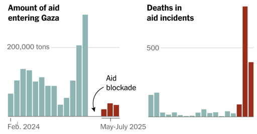 Less food is going into Gaza now than during most other times in the war. Hundreds of Palestinians have been killed while heading toward aid sites. Many others are suffering from serious malnutrition, and Gazan health officials say scores have died from it.