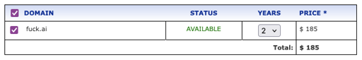 minus-squaremsspwn@lemmy.mllinkfedilinkarrow-up18·8 months agoSadly they thought ahead and blocked it for registration. Who is output below. whois fuck.ai Domain Name: fuck.ai Registry Domain ID: 9a6ce4c7c7404941afe494053b8f51d3-DONUTS Registrar WHOIS Server: whois.identitydigital.services Registrar URL: https://identity.digital/ Updated Date: 2018-01-22T14:49:02Z Creation Date: 2017-12-16T03:25:00Z Registry Expiry Date: 2026-12-09T03:25:00Z Registrar: Registry Operator acts as Registrar (9998) Registry Registrant ID: 8626dd24374d46778a27685b2448f011-DONUTS Registrant Name: blockeddomains@gov.ai Registrant Organization: blockeddomains@gov.ai