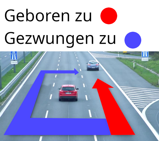 Nein, immer wieder um den roten Wagen kreiseln. Links überholen, nach rechts rüber, zurückfallen lassen, links überholen, nach rechts rüber, zurückfallen lassen und so weiter bis Rot sich ans Rechtsfahrgebot hält.