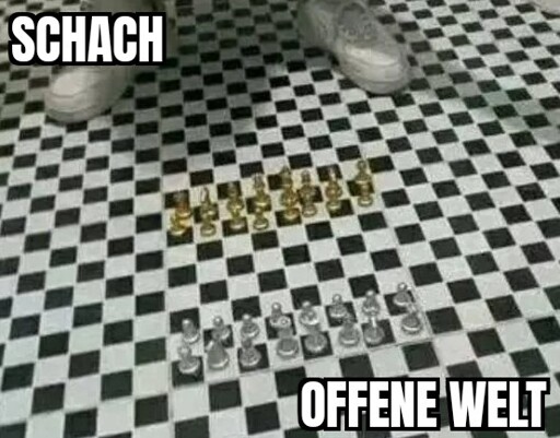 Hängt jetzt von der Art der Beschaffenheit dieser entweder endlichen oder unendlichen aufgespannten Ebene ab, aber wenn es eine Topologie eines Kugelförmigen Raums oder ein 3-Torus-Raums hat, dann würde man wie Bernd das Brot links verschwinden und rechts wieder auftauchen und man könnte mit einem Zug den jeweils gegnerischen Turm schlagen. Wer kann mir verraten wo der Läufer wieder auftaucht, sollte er diese Diagonale Verbindung in die vermeintliche Unendlichkeit ebenfalls nutzen?