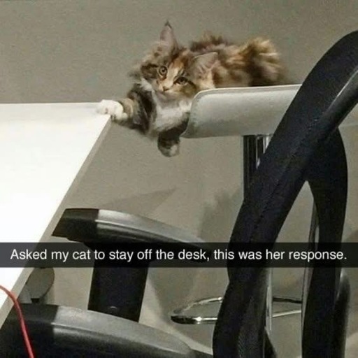 I used to have a cat I could let out on the back patio with me, and she would stay on whatever concrete pad we had out there. I moved a few times, and each time we would do this routine when we went outside the first time where she would put one paw like this and look at me and wait. Without much change in my tone I could just say ‘yea’ or ‘nope’ and she’d learn where she’s allowed to go. It was always pretty obvious, just a concrete pad, but shed test the boundaries anyway. There was never any friction, shed just accept it and test the next spot. But one time I tried seeing how specific she would go, and I said ‘yea’ to some railroad ties lining a flower bed on one side of the patio. For the rest of my lease, she would not step foot in the flower bed but would do a loop on the railroad ties and come back to the concrete. I’m not sure where I’m going with this, maybe your desk needs railroad ties