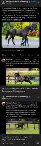 Maybe there are some sources in Japanese, but I only read google-translation of the wiki page, and it says that Kitasan used to be a clever one and was trained pretty harshly, so maybe the posted story did happen as Kitasan continued to train as a force of habit?