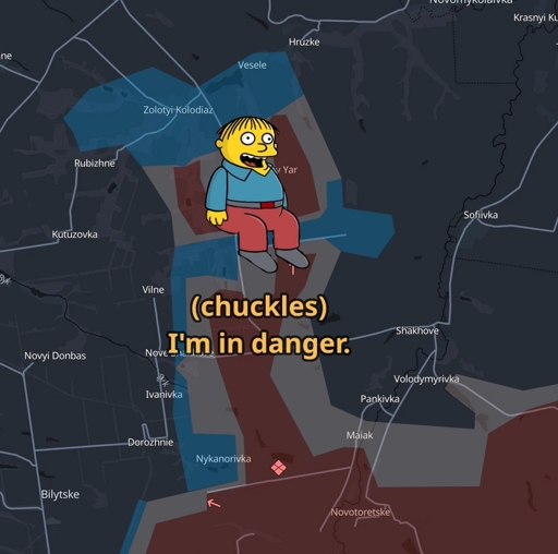 minus-squarekhannie@lemmy.worldlinkfedilinkEnglisharrow-up11·4 months agoRussia did a long push forward near Pokrovsk recently and Ukraine counterattacked, cutting off the troops in the uh-oh section. Uh oh! They’re in danger.