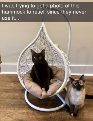 minus-squareyou_are_dust@lemmy.worldlinkfedilinkarrow-up35·3 months agoI was making plans to get rid of a cat hammock because my cat never used it. Never wanted anything to do with the thing. As soon as I was ready to get rid of it, my cat started sleeping in it. They always know.