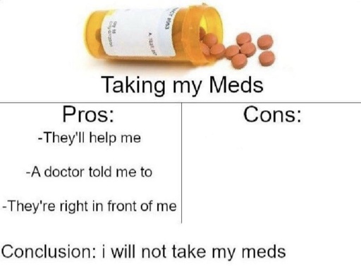 - I hyperfocused on something and skipped my alarm, now I’m an hour late to my dose. Oh well, maybe I should just skip this one.