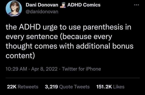 Just to add to the pile of, “I think I might have ADHD cause this is what it do”.