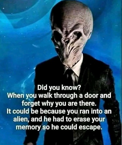 Walks into room sees alien, purposefully forgets alien. Leaves room remember alien, walks into room sees alien, purposefully forgets alien. Repeat like I do with all my problems, I will stare at them for 5 minutes and somehow forget what the problem is while looking dead at it.